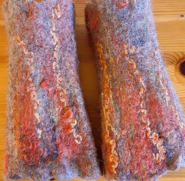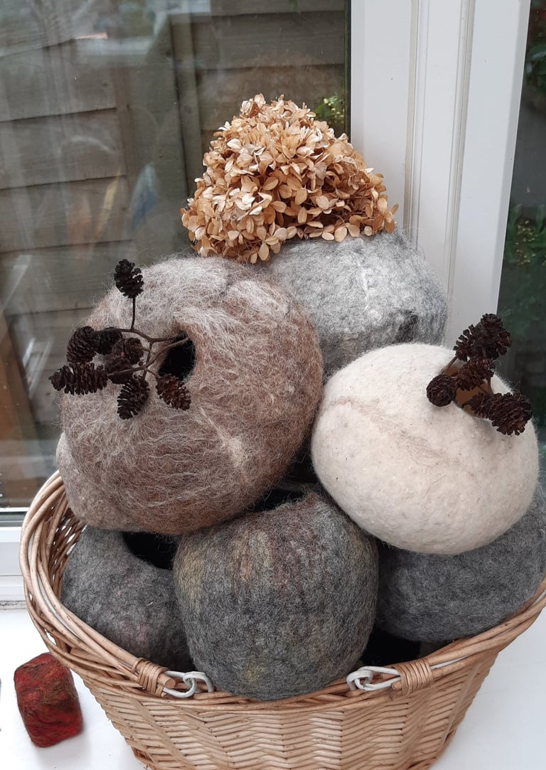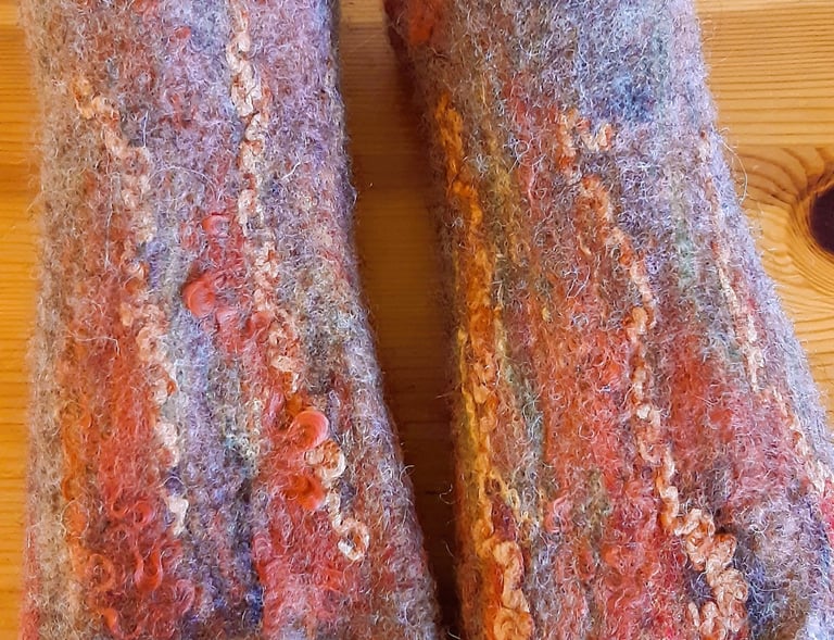 Highlighting various methods like knitting, wet felting, and dyeing.